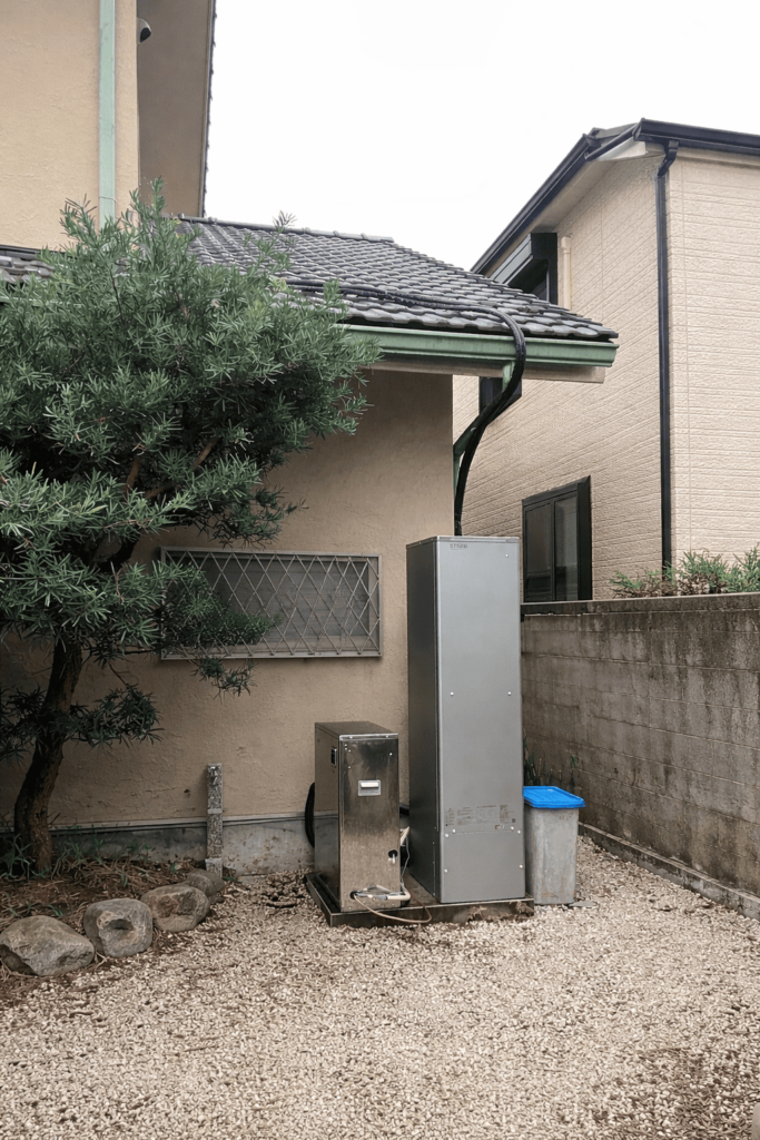 エコキュートから、ReTerra+石油給湯器への取替えとなります。ReTerraはスリムなタンクを採用しているため、給湯器との併用においても少ないスペースでも設置が可能です。
